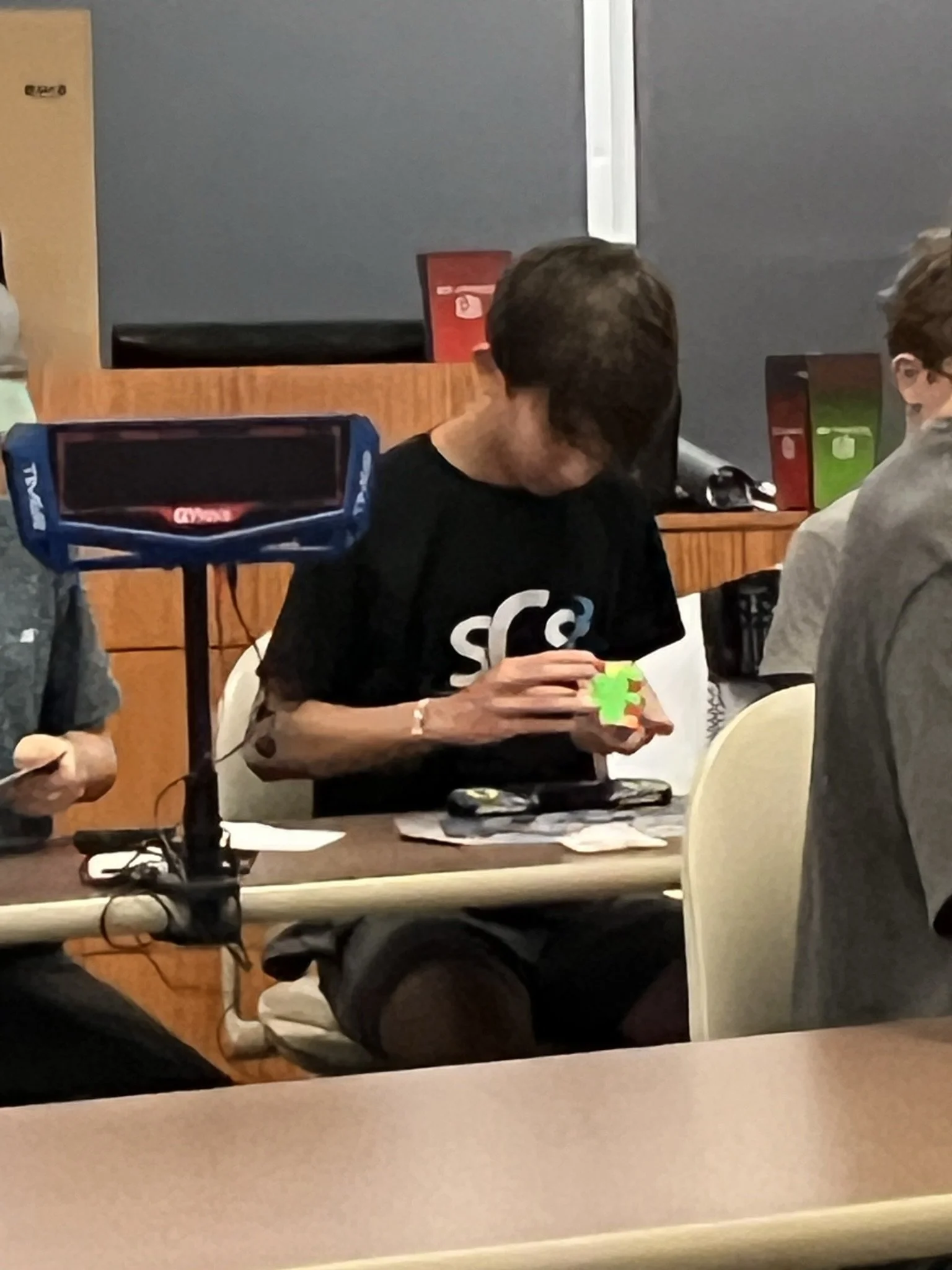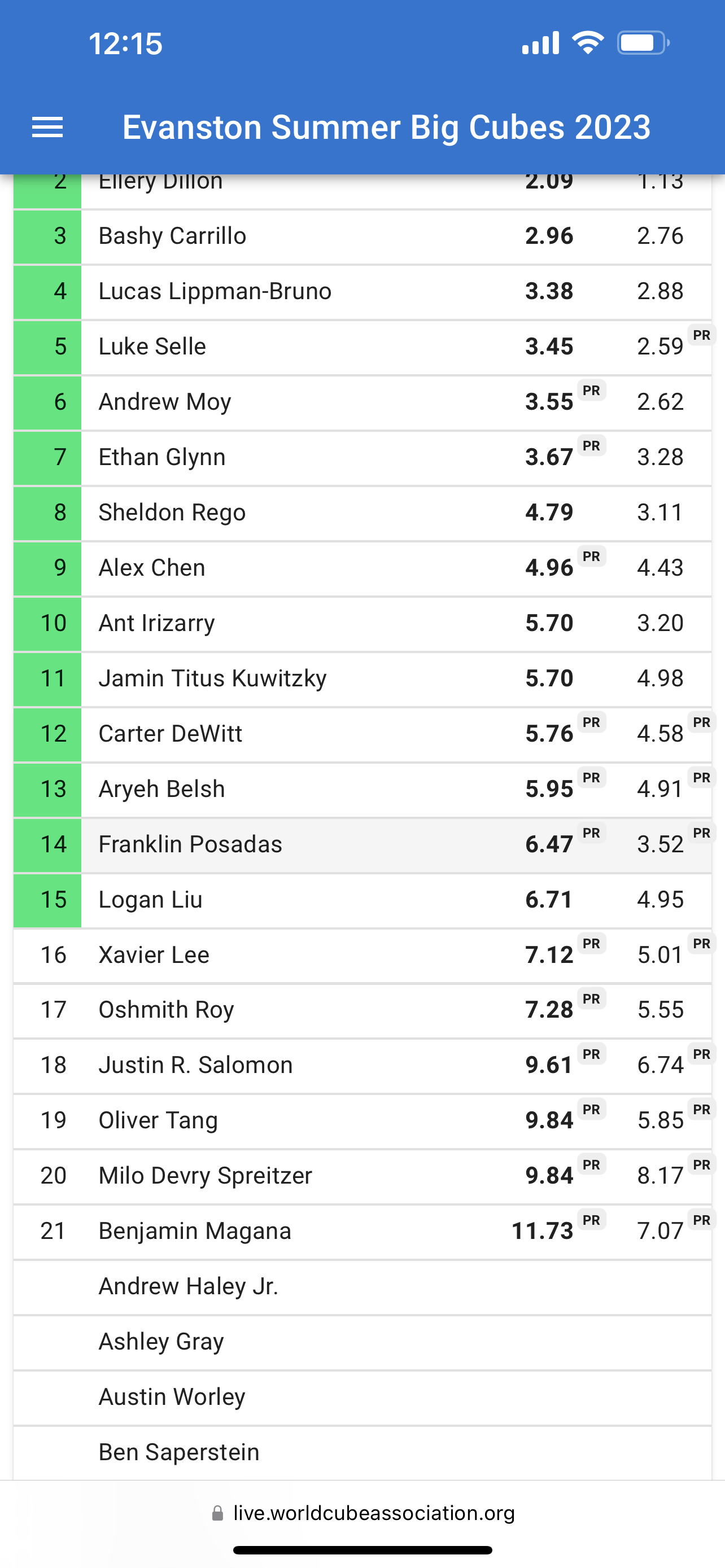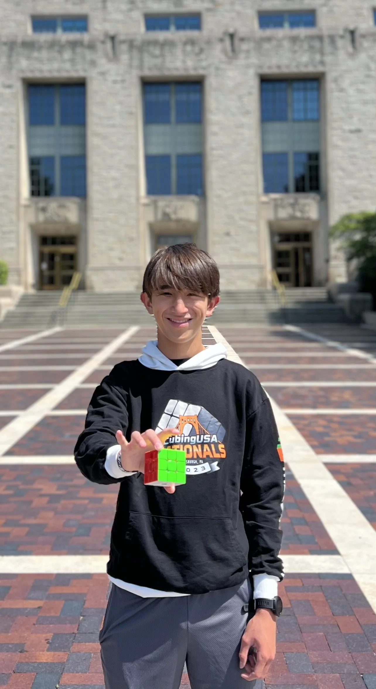 Heading back home to Illinois, I took on some more local talent at Northwestern! Walking inside the Tech Building before getting to the competition brought back so much nostalgia for me—I still remember walking through the same hallways to go to summer classes at camp. For this competition, the harsh qualifying times and highly competitive spirit seen at Nationals seemed to ease a bit. I competed in 2x2, 3x3, 4x4, and 5x5. Despite no improvement in my average, I made it to the second round and got an in-competition best single of 14.10 seconds in the 3x3! (My all-time best is 10.61 seconds.) I also made the second round of 2x2, falling just 6 places short of making the finals. In the 5x5, I was finally able to get my first ever 5x5 average in competition because of the cutoff time, which was a very lenient 3 minutes! Unfortunately, my streak of setting a new personal best competition single ended. But the effort that I was most successful in was the 4x4—for the first time in competition, I dipped under 60 seconds on a 4x4 solve, completing my fourth solve in 57.75 seconds! I was also only a few seconds off my best average. Hopefully I will be able to average under 60 seconds after getting some more practice under my belt.