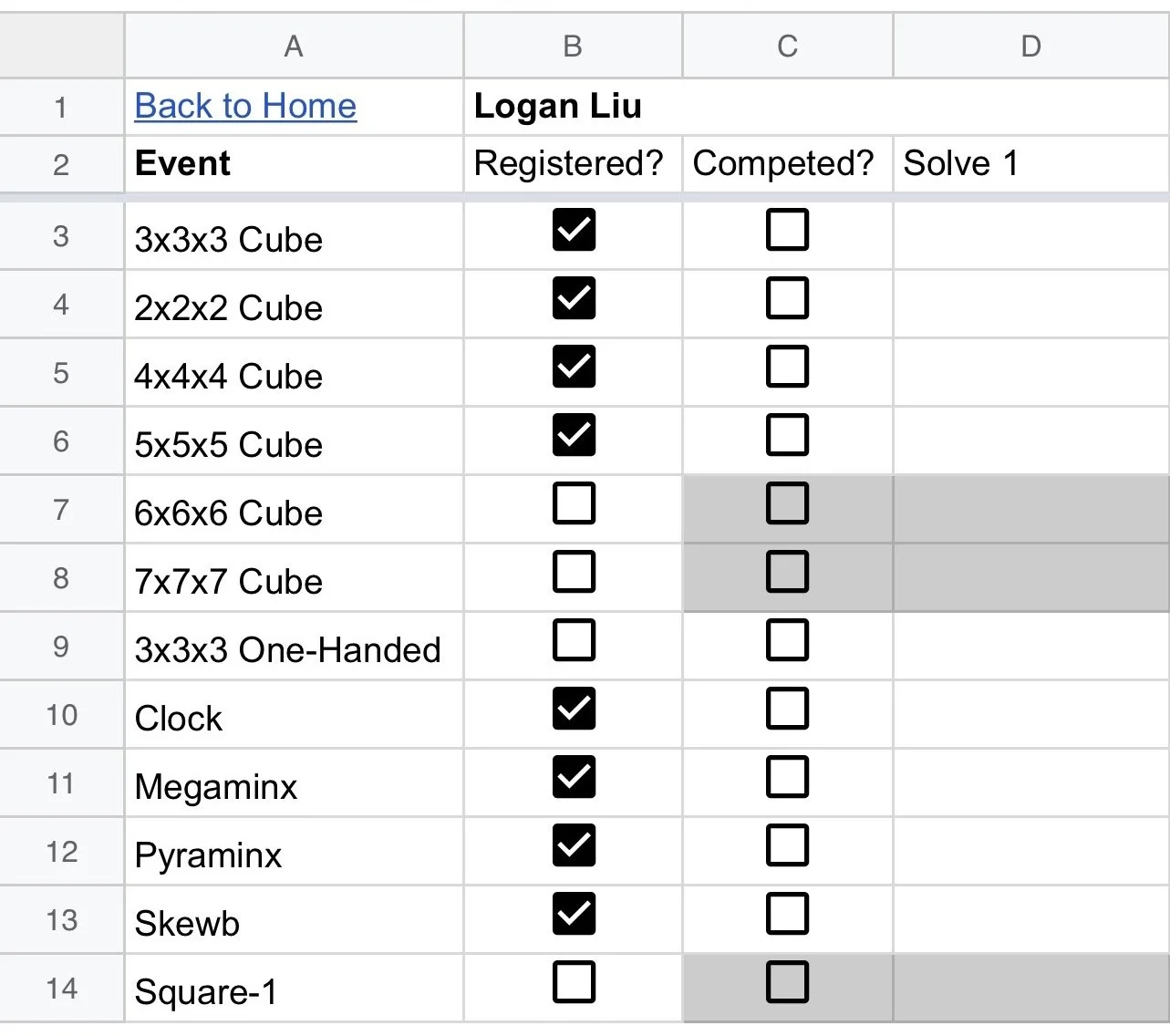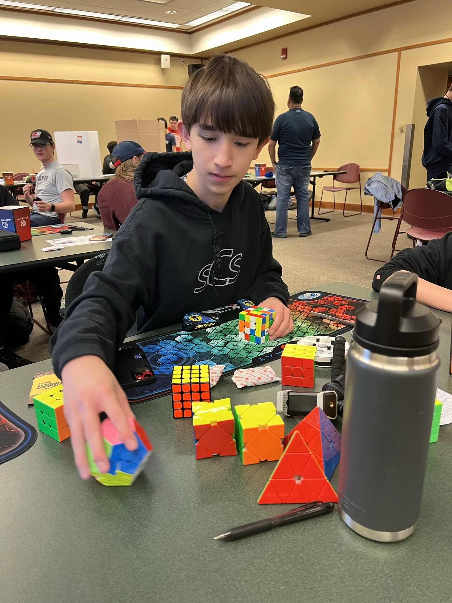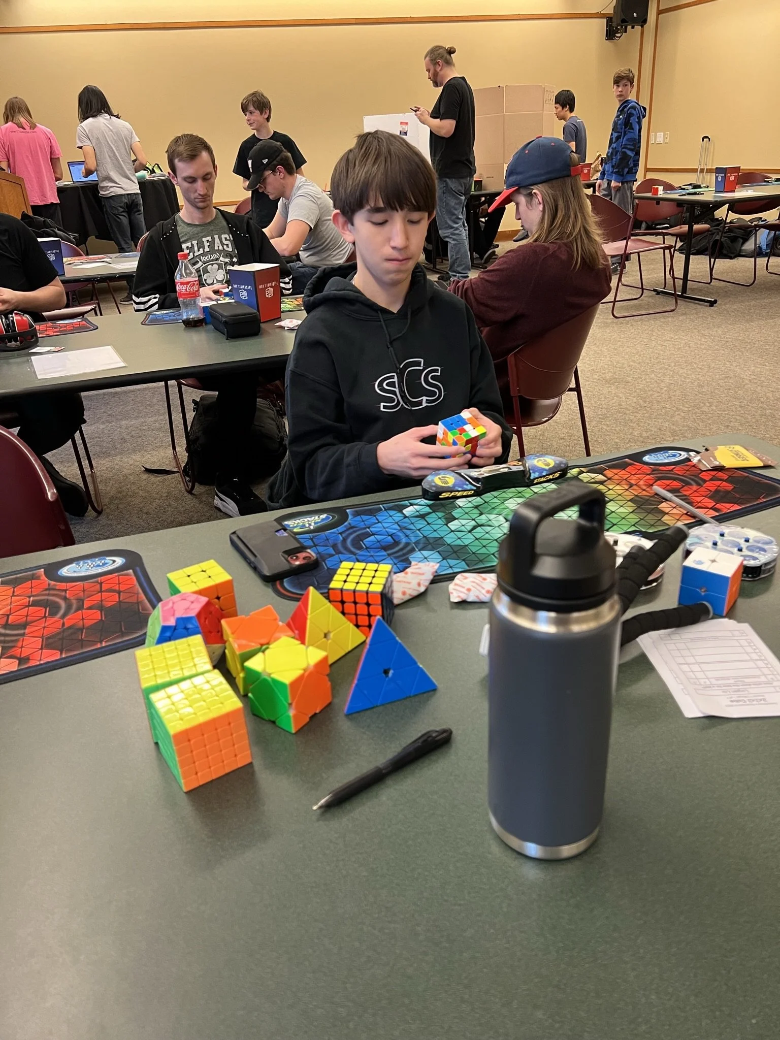 This was my first time doing a competition with this format…I’m not even sure if any recent competitions have done anything remotely similar. For this competition, each competitor was given a cumulative time limit of 30 minutes in order to complete as many events as they could. However, you also needed to do all five solves to get an average. Some people joked that they would need all 30 minutes just to do the 7x7—but I’m glad (or maybe, quite sad now) that nobody actually did it! For me, I wanted to prioritize quantity and try to improve on my times in as many events as possible. Thus, I opted for the smaller cubes with some Megaminx, Clock, Pyramid, and Skewb on the side. With so many events and this competition being my first with Megaminx, I was practically bound to get at least one personal best. I wasn’t expecting five though! I’m also now just about a second away from breaking the 60-second barrier in the 4x4. So close yet so far! I’ll get there…