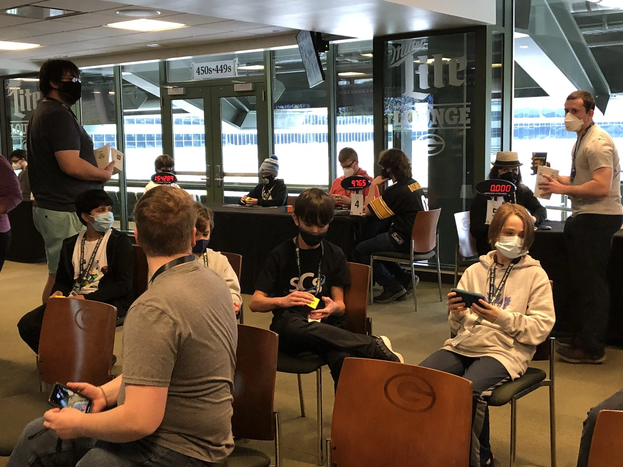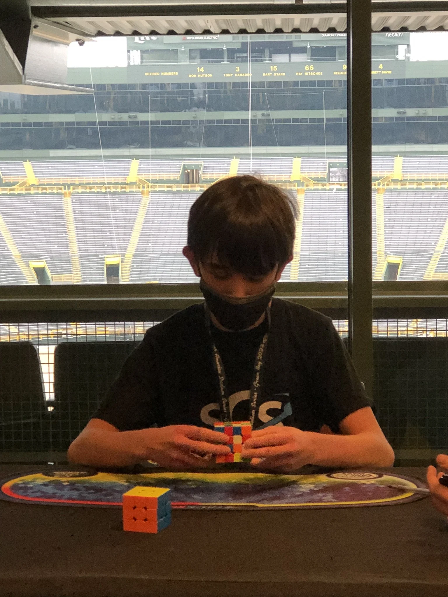 For my second competition, we head up north to the historic Lambeau Field for the first competition in the Stadium Series! The competition was situated inside of the private suites in the stadium, so we were able to get a beautiful view of the stadium while competing. It was very cold—both outside and inside the building, but the spacious room made it a bit more comfortable. Although I am a diehard Bears fan (being from Chicago), I enjoyed being able to walk through Lambeau Field, especially when it wasn’t filled with tens of thousands of people. After the previous competition, I met some other people who were also from the Chicago area (in fact, two of my friends I met at the Windy City New Year competition were from towns neighboring mine!) and they also made the drive up north to compete! For this competition, I did the 3x3, 4x4, Skewb, and for the first time in competition, the 2x2 and Pyraminx. While I was unsuccessful in advancing to the next round in any events, I was able to make the cutoff in the 4x4 to get a full average. The nerve of competing that I felt at the previous competition were much less prevalent, and I felt much more confident; in fact, I managed to either get a new personal best single, average, or both in every single event I competed in! Hopefully I will soon be able to average sub-20 seconds in the 3x3 and get a sub-60 second time in the 4x4.
