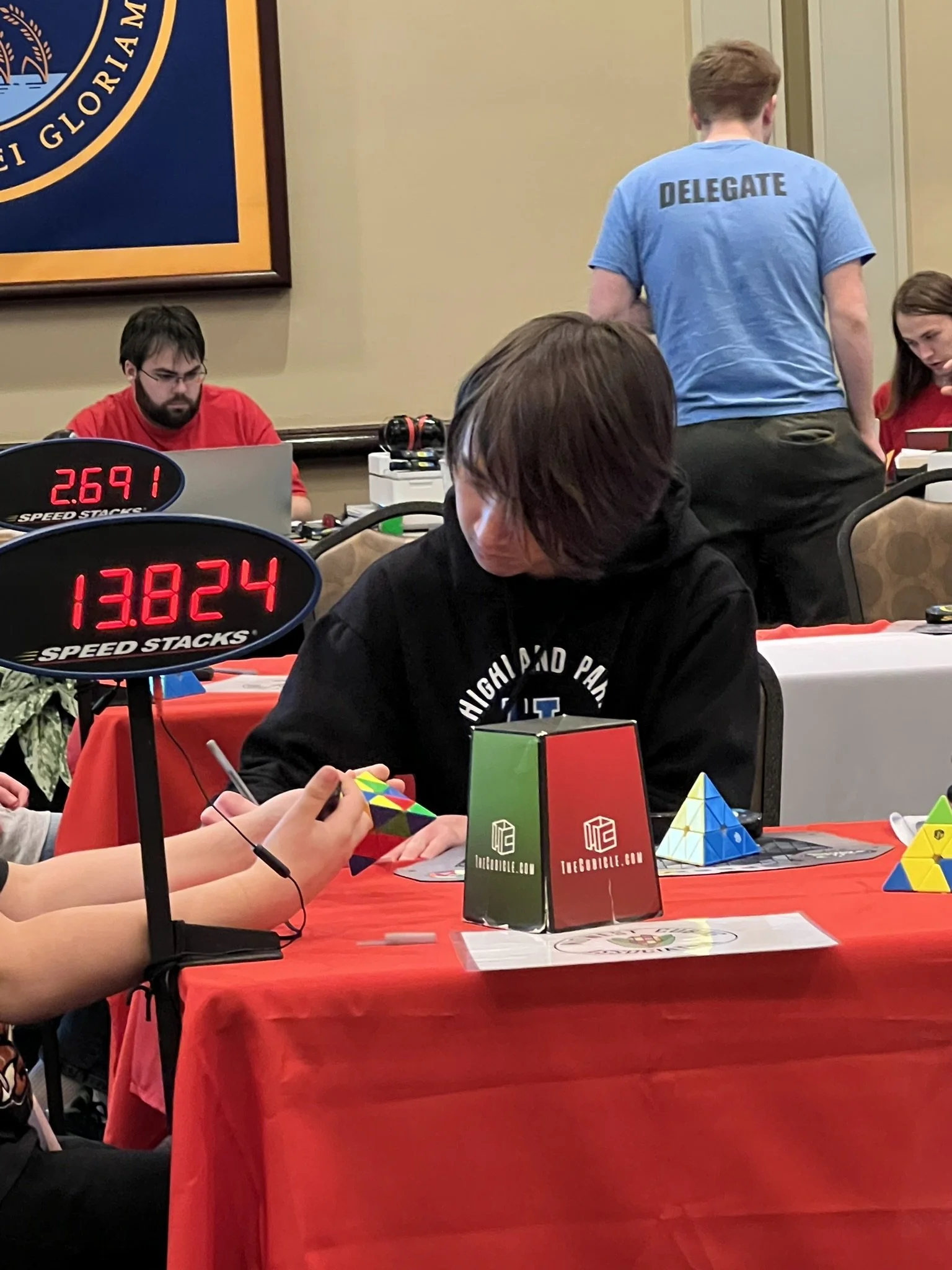 Well…you guessed it! Back in Milwaukee again…but in the frigid Wisconsin cold. This competition, due to its sheer size, lasted two days (hence the name “Cubing Mania”), but I only participated in the first day. It was a nice way to celebrate the New Year with friends! We actually ended up in the same hotel (by complete coincidence), so I was glad to enjoy some company while eating some pretty good hotel breakfast (you can never go wrong with breakfast at any hotel!). In terms of the competition itself, I think that the cold outdoors snuck inside the ballroom. I didn’t get any new personal bests, but I did average better here in the 4x4 than in Evanston (when I got my first sub-60 single). Sadly, the Bucks were out of town, so our trip was pretty much limited to cubing (fine for single-day competitions, but takes forever when it lasts multiple days because of how long you have to wait for other people to compete). Still glad to get another 25 solves officially recorded and under my belt!