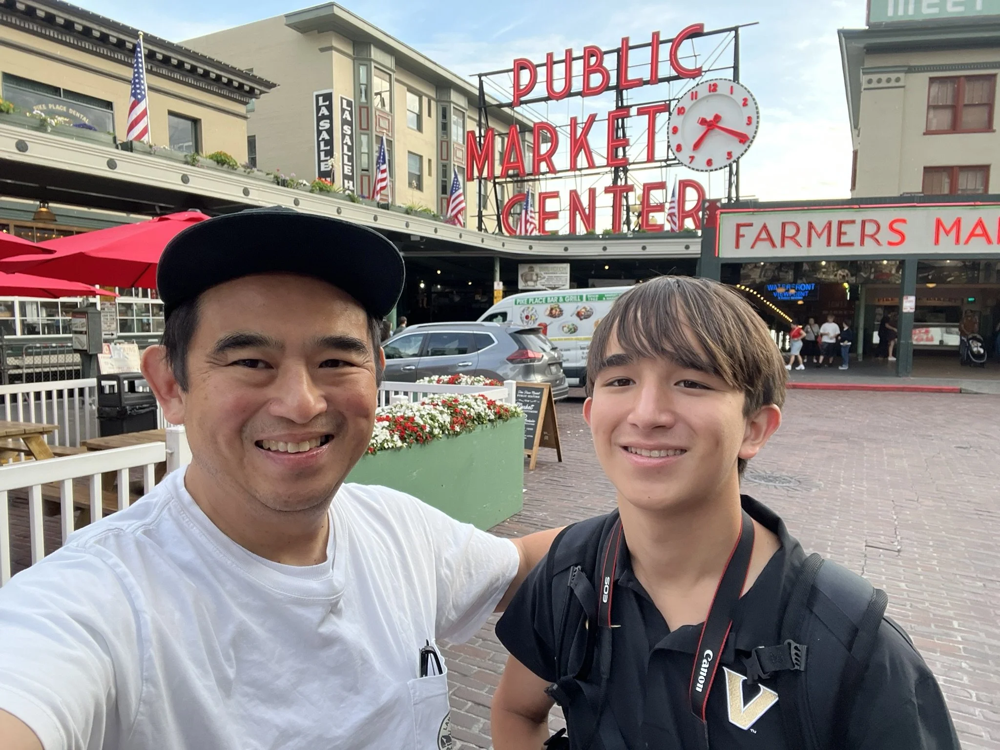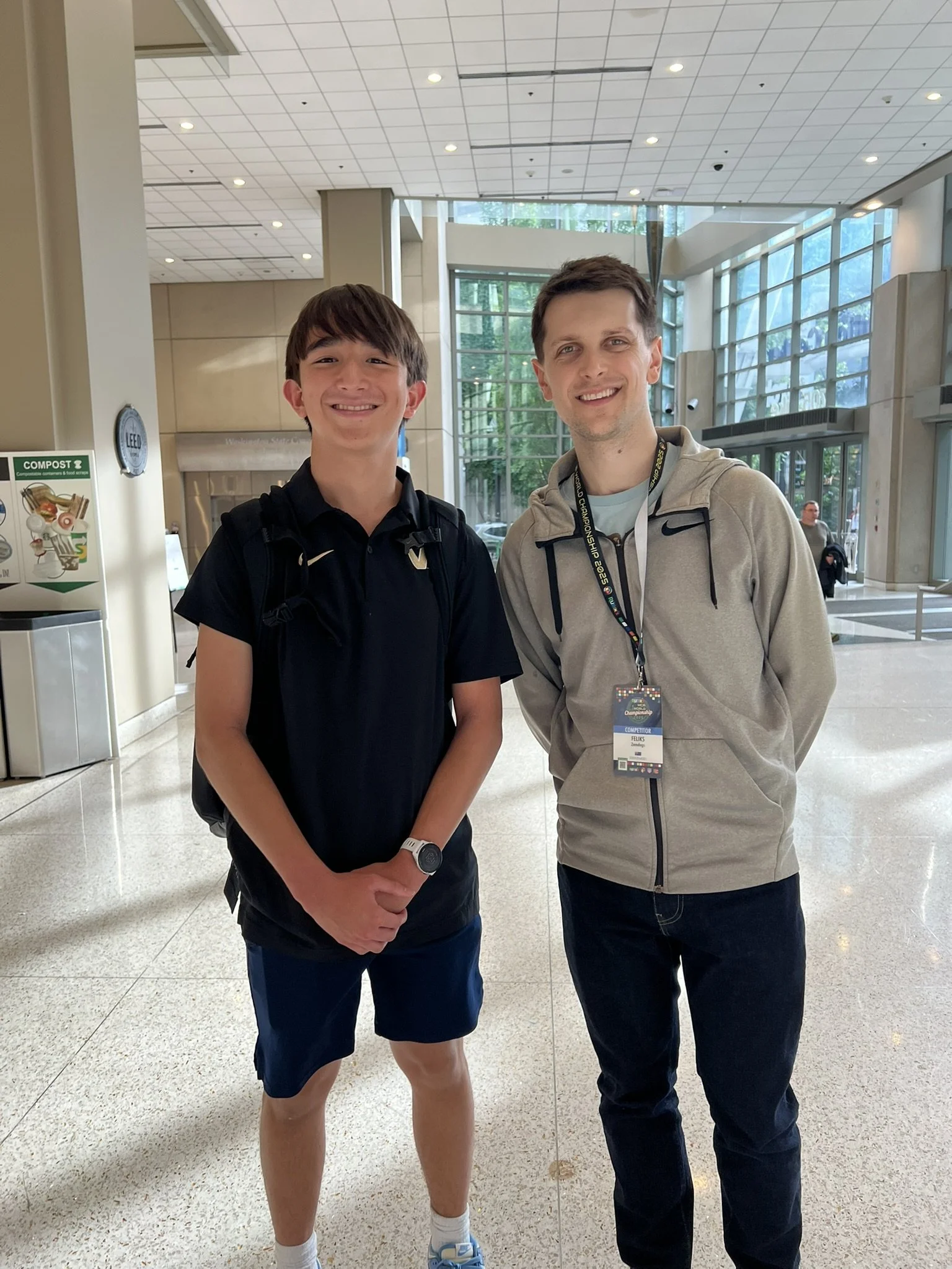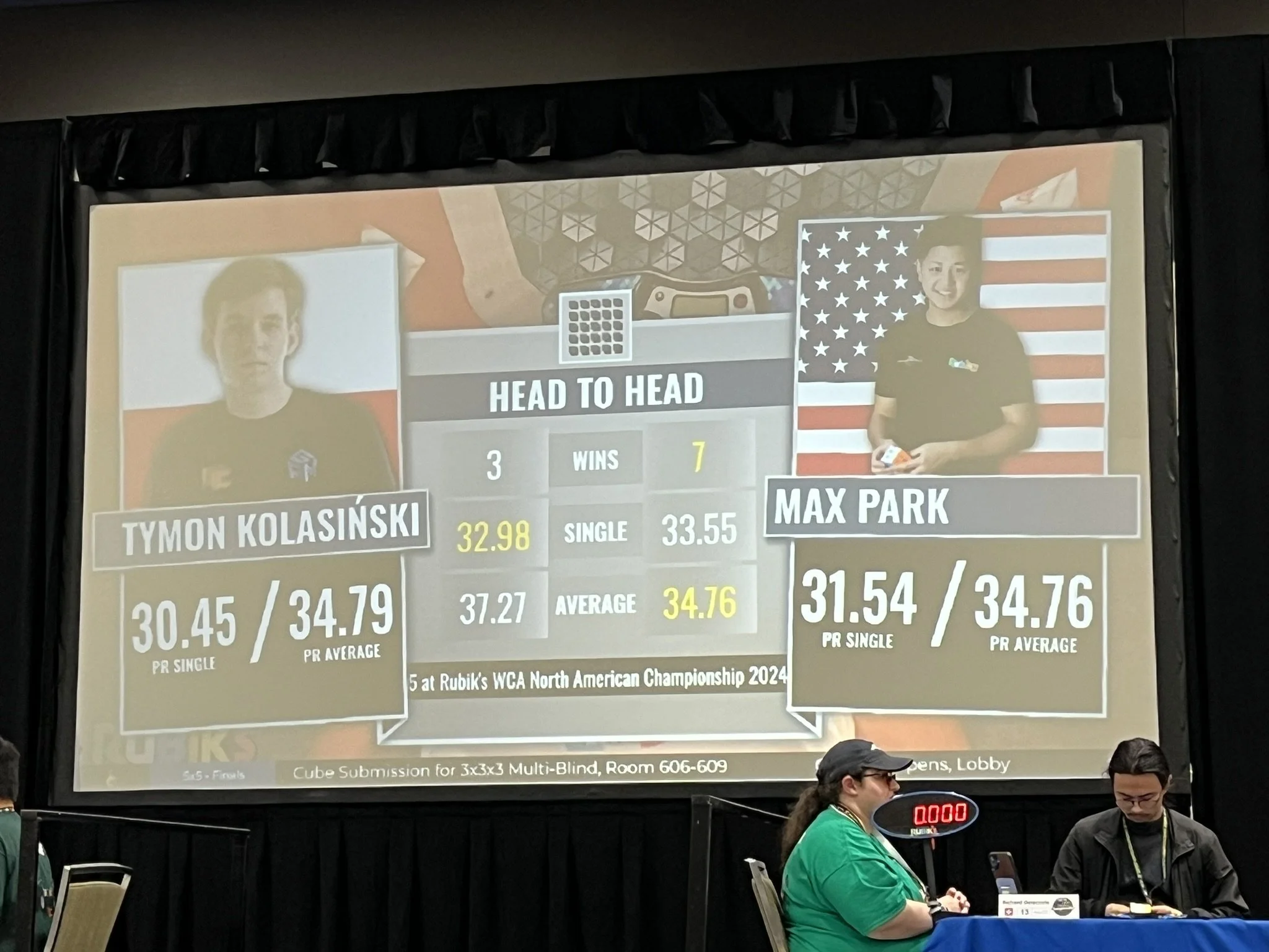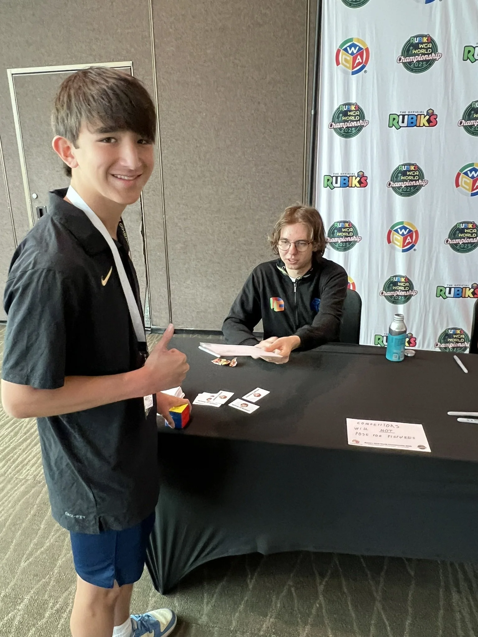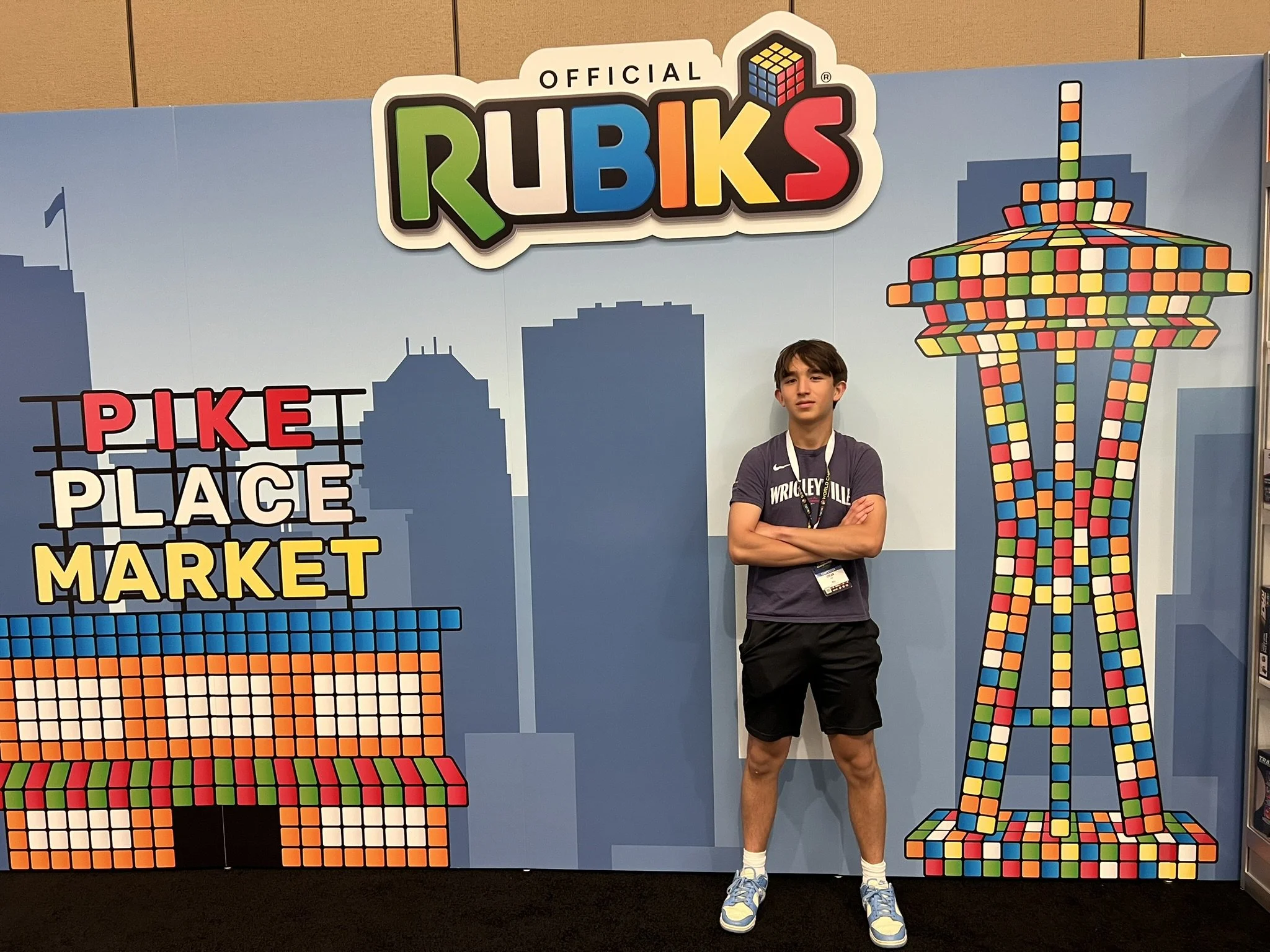 I had the great privilege of competing in four events (though I was unable to compete in the 3x3 due to having a flight back home that night—only to leave the next morning for a summer program). I also got to meet countless stars like Tymon Kolasinski, and the G.O.A.T. of cubing: the one and only Feliks Zemdegs. What was most special to me, however, was how warm yet intense the environment of the competition was. Everyone was socializing with cubers of different ages, experience, and even nationalities. At the same time, the world’s best were duking it out on stage. Despite having attended close to twenty competitions, this was the very first one where I got to experience/watch a World Record be broken live—specifically, Tymon’s 5x5 World Record average. It’s a marvel how a single puzzle cube invented fifty-one years ago has established a community spanning of hundreds of thousands of people, dozens of countries, and the entire globe. I also got to tour the University of Washington, visit Kona Kitchen (owned by Cobra Kai actor Yuji Okumoto—great guy!), and watch an exciting Seattle Mariners game with my friends Henry and Max.